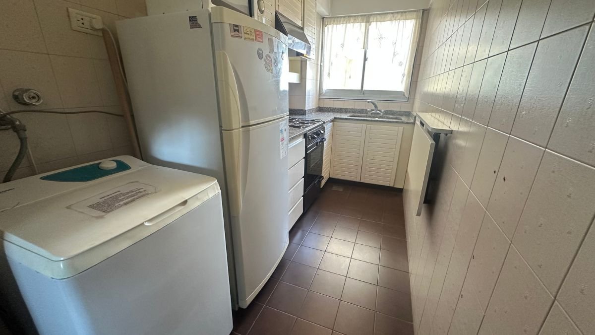 La cocina se encuentra separada del ambiente principal, equipada con amoblamiento a medida y espacio con conexión para el lavarropas.